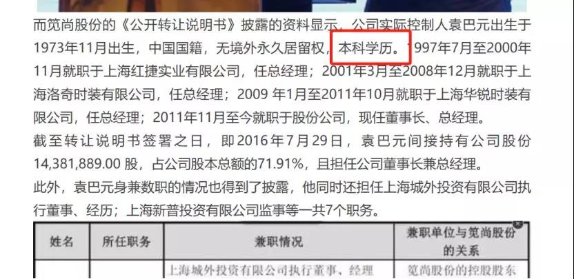 袁巴元現任上海筧尚實業股份有限公司董事長及總經理。當時張雨綺發表微博稱“公司正在準備上市”。實際上,上海筧尚實業股份有限公司在2016年7月29日申請掛牌新三板,但是兩年多過去了依然沒有任何動靜。主營服裝新零售的上海筧尚實業股份有限公司由於受電商的衝擊,線下的服裝店生意也並不景氣,上市的事情也就一拖再拖。