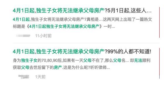 最近網上出現了一篇熱文《4月1日起獨生子女將無法繼承父母房產》,一時間大家都在熱傳。