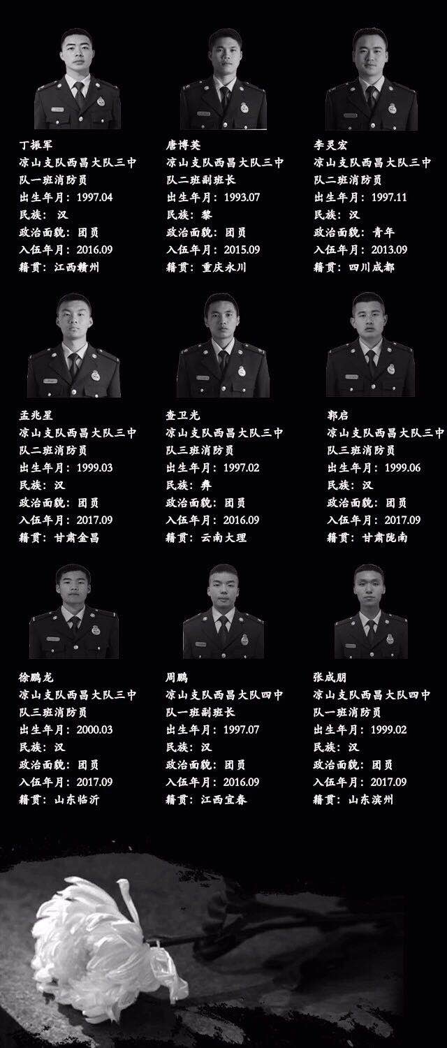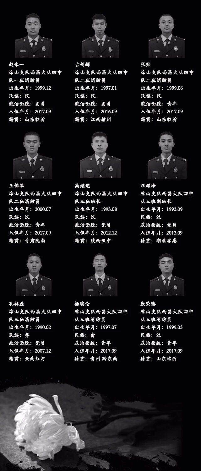 30名犧牲的烈士中,有27名消防戰士,其中有一位80後,24名90後,2位00後。
