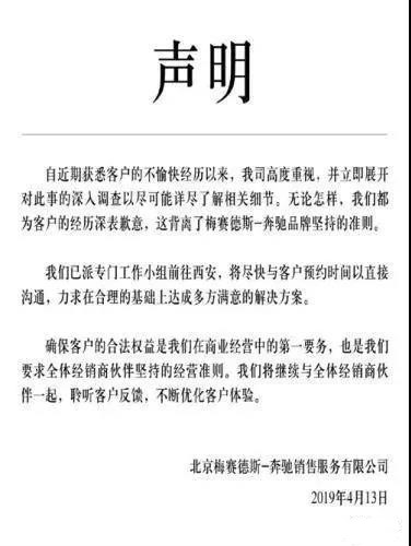 一個好消息是:奔馳中國區域的官方機構發佈了聲明,表明了自己的態度,希望妥善處理此事。這可能是繼2018年3月奔馳車主“高速定速巡航失效”事件引發眾人對“車輛後臺控制”問題擔憂後的另一次危機公關吧!