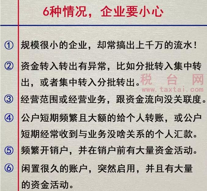 2019年開始,企業私人帳戶的每一筆流水都能被查清!一旦被稽查,補稅是小事,還要繳納大量滯納金和稅務行政罰款,構成犯罪的,更要承擔刑事責任!公司老闆個人銀行帳戶不再“安全”了。