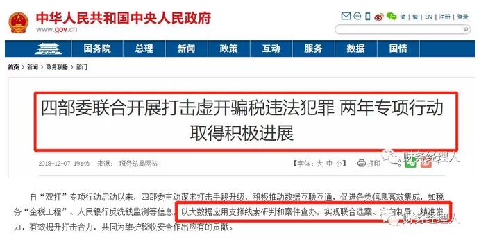 2、稅務總局、公安部、海關總署、中國人民銀行在內的四部委共同部署開展打擊虛開騙稅違法犯罪兩年專項行動,重點打擊沒有實際經營業務只為虛開發票的“假企業”、沒有實際出口只為騙取退稅的“假出口”。