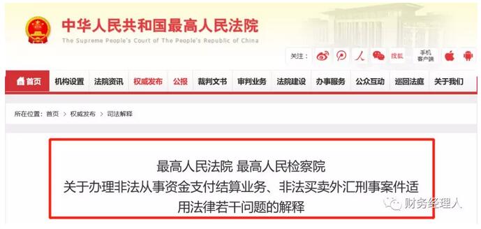 為依法懲治非法從事資金支付結算業務、非法買賣外匯犯罪活動,維護金融市場秩序,法釋〔2019〕1號就辦理非法從事資金支付結算業務、非法買賣外匯刑事案件適用法律的若干問題做出了解釋。