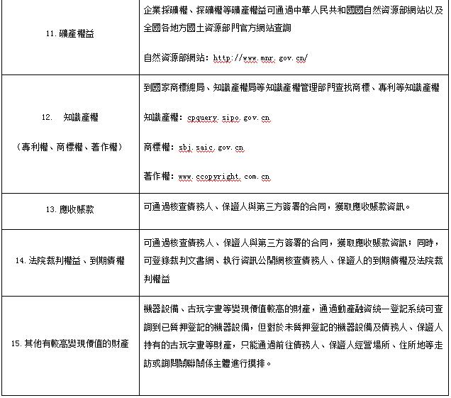 接下來:我們看看銀行催收涉及較為普遍的15類財產類型及其查找辦法(可參考)