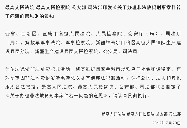 為依法懲治非法放貸犯罪活動,切實維護國家金融市場秩序與社會和諧穩定,有效防範因非法放貸誘發涉黑涉惡以及其他違法犯罪活動,保護公民、法人和其他組織合法權益,根據刑法、刑事訴訟法及有關司法解釋、規範性檔的規定,現對辦理非法放貸刑事案件若干問題提出如下意見: