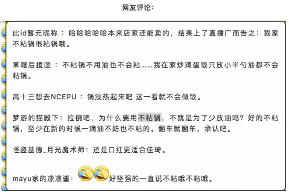 這不是李佳琦帶貨第一次翻車,上月李佳琦直播過程中所售產品炊大皇不粘鍋,他的助手演示煎蛋時粘鍋。在淘寶擁有千萬粉絲的“口紅一哥”李佳琦直播翻車,所售產品炊大皇不粘鍋,他的助手演示煎蛋時粘鍋。雖然事後不粘鍋公司客服稱,李佳琦不太會做飯,鍋沒有問題。但是這也客觀上反應出,網紅帶貨的不專業。