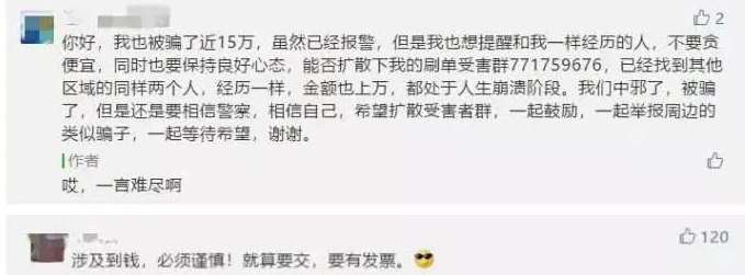 刷單群或許是最常見的方式,部分網友提醒不要貪小便宜誤入刷單群,也有人說涉及到錢必須謹慎,只要是要交費的兼職大多都是坑。