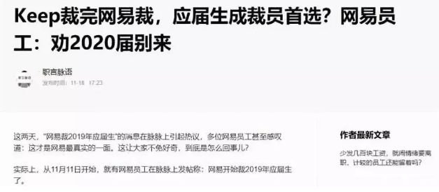 此前,“網易裁2019年應屆生”的消息曾在脈脈上引起熱議,多位網易員工甚至感歎道:這才是網易最真實的一面!