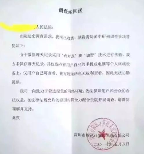 微信團隊曾公開發佈聲明,微信不留存任何用戶的聊天記錄,聊天內容只存儲在用戶的手機、電腦等終端設備。