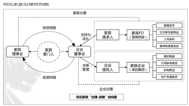 從家族企業的持續發展,到家族財富的保值增值,作為家族企業傳承管理的一個完整系統,其核心議題——“治理和戰略”的設計與運作,成了經營企業的家族實現成功傳承的關鍵。美的集團傳承管理的“何氏邏輯”,呈現了中國家族企業傳承發展過程中,一個極具借鑒意義的案例。
