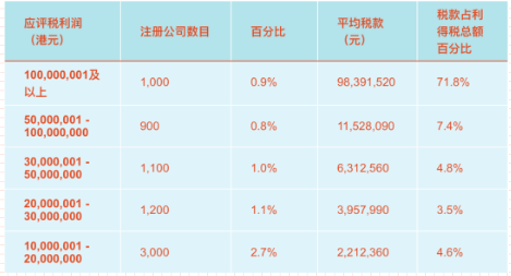 更加值得一提的是,從2019/2020課稅年度來看,交稅最多的5%註冊公司(約5700家)繳納的利得稅,占利得稅收入的90%。