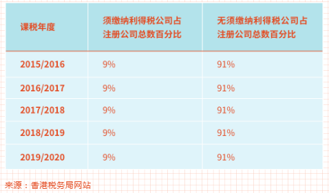 5月26日(前天),香港稅務局發佈消息稱,2019/2020課稅年度約有1271000家本港註冊公司。在計及《財政預算案》宣佈的一次性利得稅寬減措施前,約113100家(即9%)公司須繳納利得稅;無須繳納利得稅的公司約1157900家,占91%。