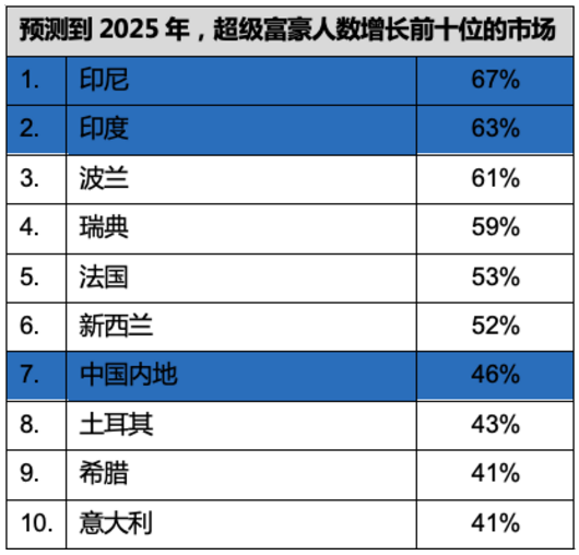 ❍未來五年,亞洲將以39%的增幅,成為超高淨值人士數量增長最多的地區;中國內地超高淨值人群增長速度驚人,預計到2025年的十年間將增加246%。