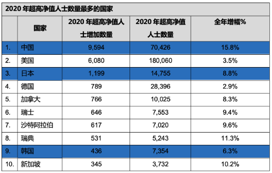 ❍2020年全球超高淨值人士數量實現了2.4%的增長,達到了52萬多人;亞洲以12%的增幅實現了大幅上升,中國內地實現了最強勁的16%的年度增長。