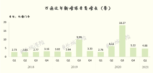 值得一提的是,澳門萬通去年第三季度的業績暴漲,Q3毛保費高達18億,相比Q2的6億翻了接近一倍,Q4也表現不俗,毛保費達5.2億。今年一季度毛保費為4.88億,較去年同期增長77%。