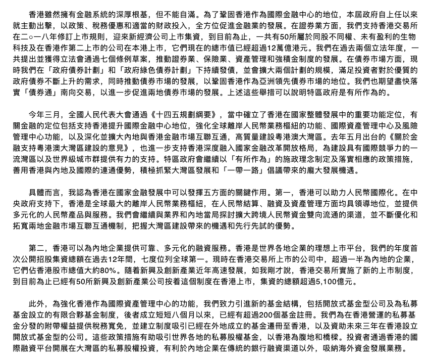 《十四五規劃綱要》的通過和《關於金融支持粵港澳大灣區建設的意見》的出臺,使香港進一步深度融入國家金融改革開放格局。