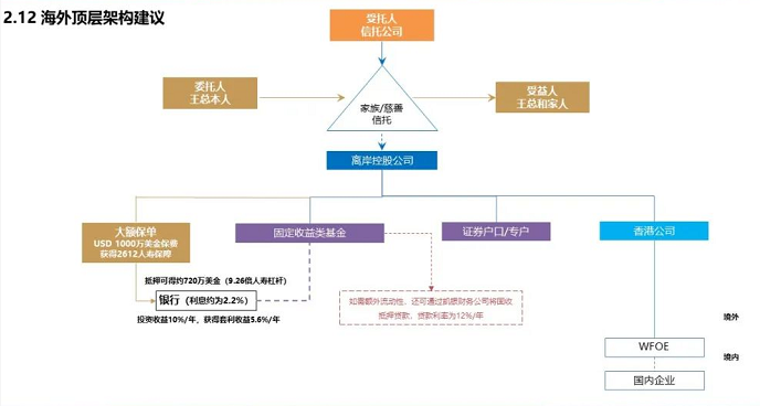 經過上市需求下的架構調整,史曉佩女士最後同步給出了優化後的資產配置方案參考,並建議可以通過家族信託作為海外頂層架構設計。