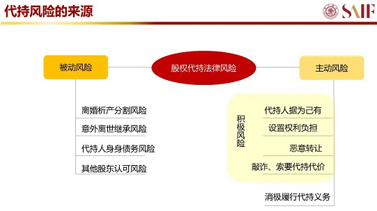 主動風險是,雖然你信任代持人,但隨著時間推移,人的想法和狀態發生變化,這個情況下,代持人是否會占為己有?或者代持人在公司中消極履行權力?