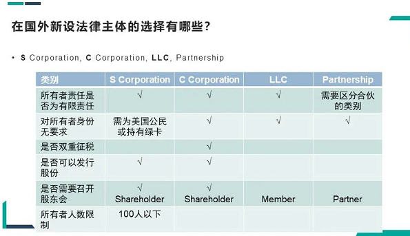 海華永泰律師事務所高級合夥人錢倩律師分享了在海外特別是在美國新設公司時可以用到的公司類型和相關注意事項。