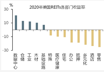 圖表10:2020年數據中心、倉儲等REITs獲得較高收益