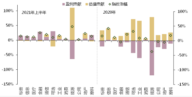 具體到企業,企業盈利能力將迎來大幅提升。通過對2021年上半年的美股企業財報分析。部分板塊如金融,汽車與原材料均有著良好的表現,揭示出盈利增長對於提升整體美股表現的作用。它們分別得益於疫情下消費端的強勢需求與大宗商品的價格猛漲。因此,在下半年美國經濟重啟與美股估值貢獻有限的情況下,供需關係的平衡將通過美股企業的盈利水準傳導至美股走勢。它們將一致決定美股整體未來的上行空間大小。