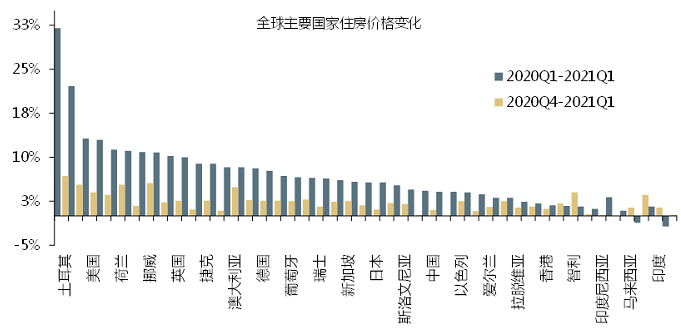 自2020年疫情爆發之後,世界各國均採取了史無前例的政策來穩定經濟增長。在政策刺激下,全球範圍內的房地產市場呈現了不同程度的恢復,多數國家已經恢復至疫情前期水準,且房地產價格也創了階段性新高。刺激房地產高景氣度的原因主要有三方面因素,一方面是疫情期間的居家隔離政策帶動了居民對獨棟住房的需求;另一方面是由於在寬鬆貨幣政策下,各種國基準利率下調至極低水準,導致房地產相關利率水準下降至歷史低位,較低的融資成本刺激了居民貸款購房情緒;最後是來自各國大規模財政轉移支付令居民擁有更多可支配收入,增加了購房的需求。