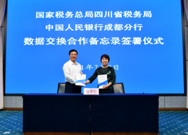 日前,據新聞報導,2021年7月9日,國家稅務總局四川省稅務局與中國人民銀行成都分行在成都舉行數據交換合作備忘錄簽署儀式。該備忘錄簽署後,四川省稅務局與中國人民銀行成都分行將對稅收收入情況、相關違規案例等6個方面的數據進行定期或按需及時分類化傳輸共用,在資訊共用、數據運用等方面開展深度合作。