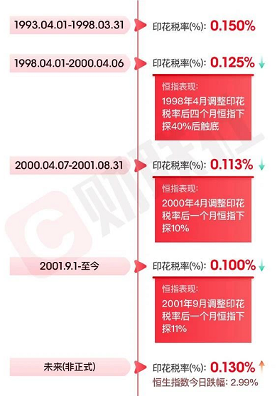 歷史上來看,自從1993年以來,香港印花稅經歷數次調整,但恒指表現不一,可見調整印花稅對市場走勢的影響不能一概而論。
