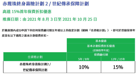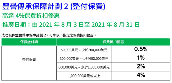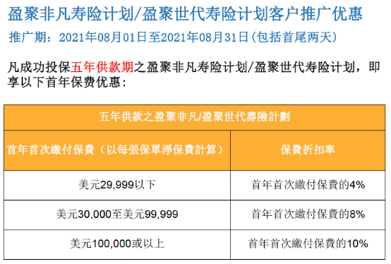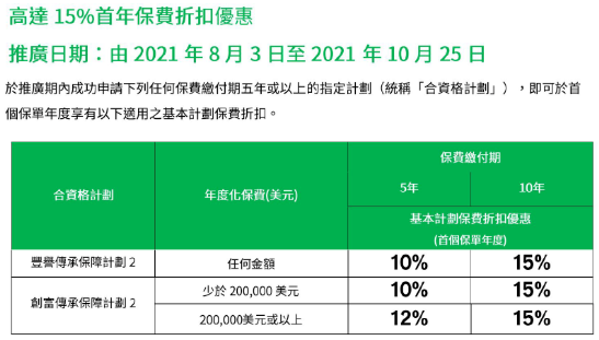 推廣時間:2021年7月1日至2021年9月30日(美元保單)