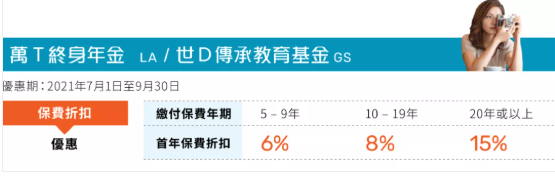 三、萬通【終身年金】和【世代傳承教育基金】美元保單,最高達首年保費15%折扣