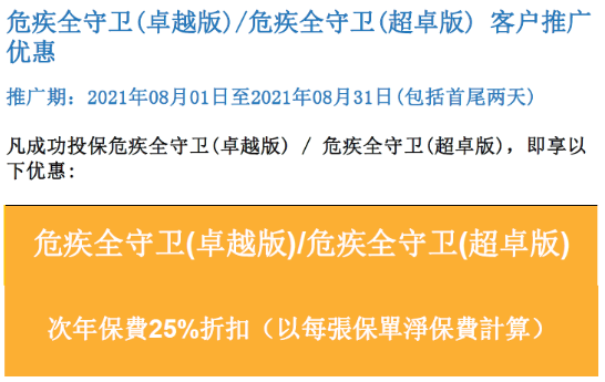 二、「危疾全守衛(卓越版)& 危疾全守衛(超卓版)」─優惠 推廣