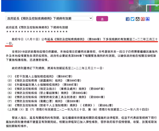 上述標粗的兩個條例,其中一個是限制從內地、澳門和臺灣赴港人士的規例,一個是限制從外國地區赴港人士的規例。這些規例的有效期原本是今年9月30日,這次又是一口氣延了半年!