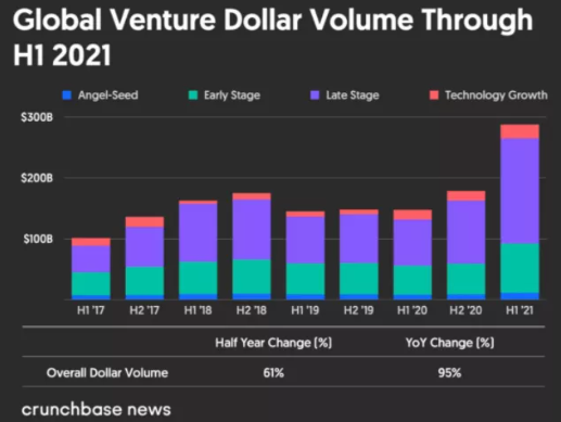 另外,從全球股權投資規模來看,疫情以後股權投資明顯活躍,2021年上半年,全球股權投資再次打破上半年的歷史記錄,創下了前所未有歷史規模。