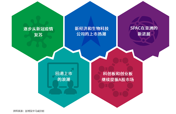 隨著全球經濟轉佳、流動性充足以及在持續開展的新型冠狀病毒肺炎(COVID-19)疫苗接種計畫推動下主要經濟體重新開放,投資者信心依然穩健。美國、香港和中國內地仍是全球IPO市場的主要驅動力,全球IPO募資金額較去年同期增加91%。