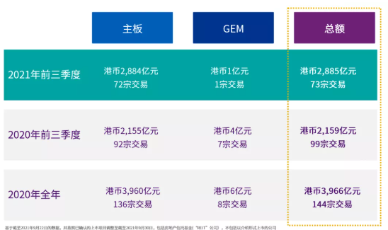 受惠於中國經濟逐步復蘇、低利率環境以及樂觀的市場氣氛,香港IPO發行繼續表現強勁。兩家在美上市的內地電動汽車製造商在本季度完成在香港的雙重主要上市,共募集資金港幣295億元,占2021年前三季度募資總額的10%。目前約有200家企業申請主板上市,申請數量創主板歷史新高,整體市場氣氛依然暢旺。