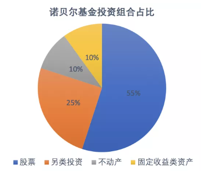 可以說諾獎基金會是個理財高手,有一套自己的投資組合模型,各類資產配比大體如下圖所示。