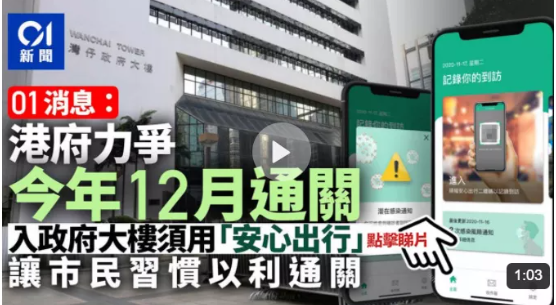 下月起入政府大樓及公立醫院必須掃「安心出行」