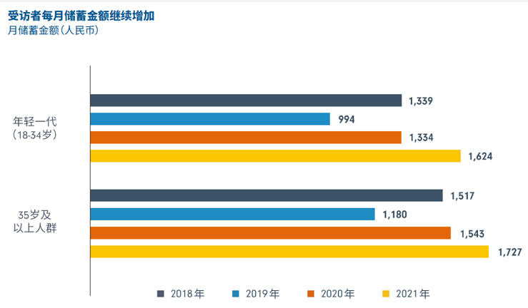 根據被採訪者統計出來的數據,年輕一代每個月的平均儲蓄額度是1624元;35歲以上則是1727元。