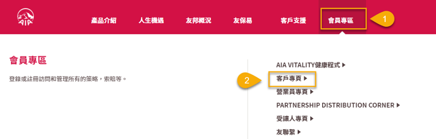 點擊「會員專區」選擇「客戶專頁」: