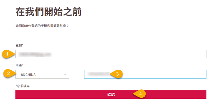 點擊「忘記登入資料」後,填寫「電郵」、選擇手機對應的區號、填寫「手機號碼」(投保時在友邦留的郵箱或者電話)