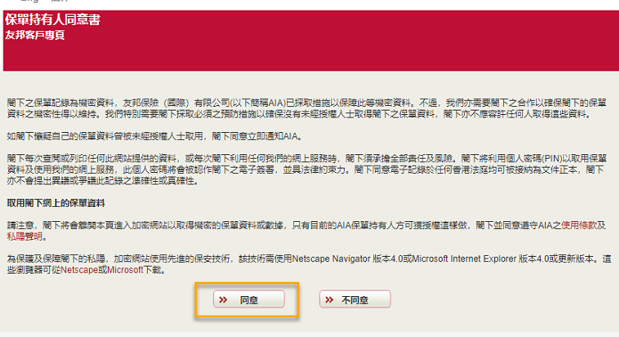 進去後會有一個保單持有人同意書頁面,我們直接點「同意」就可以了。