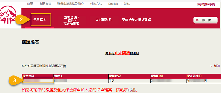 則點擊「保單檔案」,點擊想要查看的「保單號碼」;