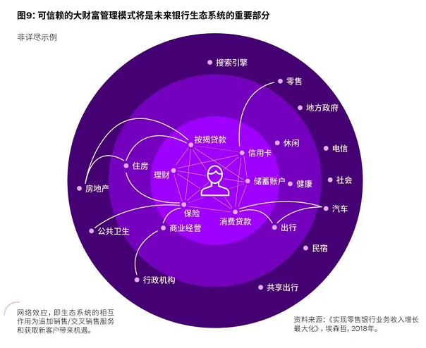 銀行應將金融服務和非金融服務結合起來,並通過供應商生態系統協調者角色建立及維護深化與消費者之間的友好信任聯結。
