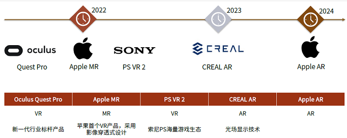 2022年蘋果有望發佈首款MR產品,Oculus或將發佈Quest Pro,索尼有望發佈新一代PS VR,或將引領行業發展方向。
