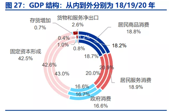 2020年我國內需消費雖然較為低迷,根據申萬數據,但結構上來看,下滑程度較深的僅有居民服務消費(同比從2019年的12.6%下滑至2020年的-7.9%),居民商品消費需求則是穩健增長(同比從4.3%升至5.6%),疫情衝擊之後居民商品消費的真實表現要好於當前市場的普遍認知。