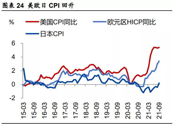 隨著全球經濟修復帶來就業情況好轉,通脹壓力升溫,全球貨幣政策寬鬆程度逐漸退坡。其中美聯儲逐步收緊,歐央行和日央行仍偏寬鬆,部分新興市場國家已開始“搶跑” 加息來應對通脹和貨幣貶值。例如俄羅斯、巴西、墨西哥、土耳其、智利等國。