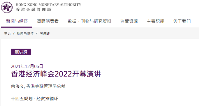 香港經濟峰會2022開幕演講