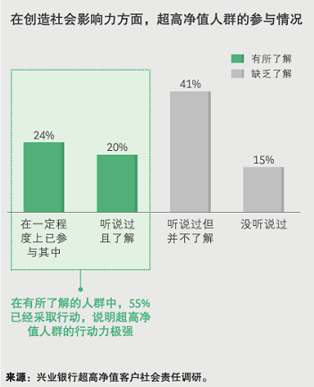 面向另一部分尚未建立清晰、成熟認識的超高淨值人群,私人銀行應當作為引路人,幫助私行客戶更加全面、體系化地認知踐行社會責任的價值和意義,引領他們逐步嘗試並深化社會影響力創造。
