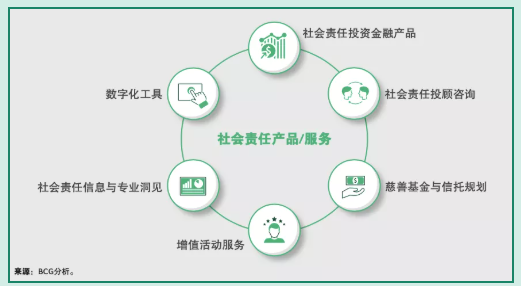 ②社會責任投顧諮詢:在投顧諮詢服務中充分融合社會責任理念,整合客戶在財富管理與社會責任領域的雙重需求,並形成資產配置建議,協助客戶通過負責任地投資理財,獲得收益的同時實現社會價值。