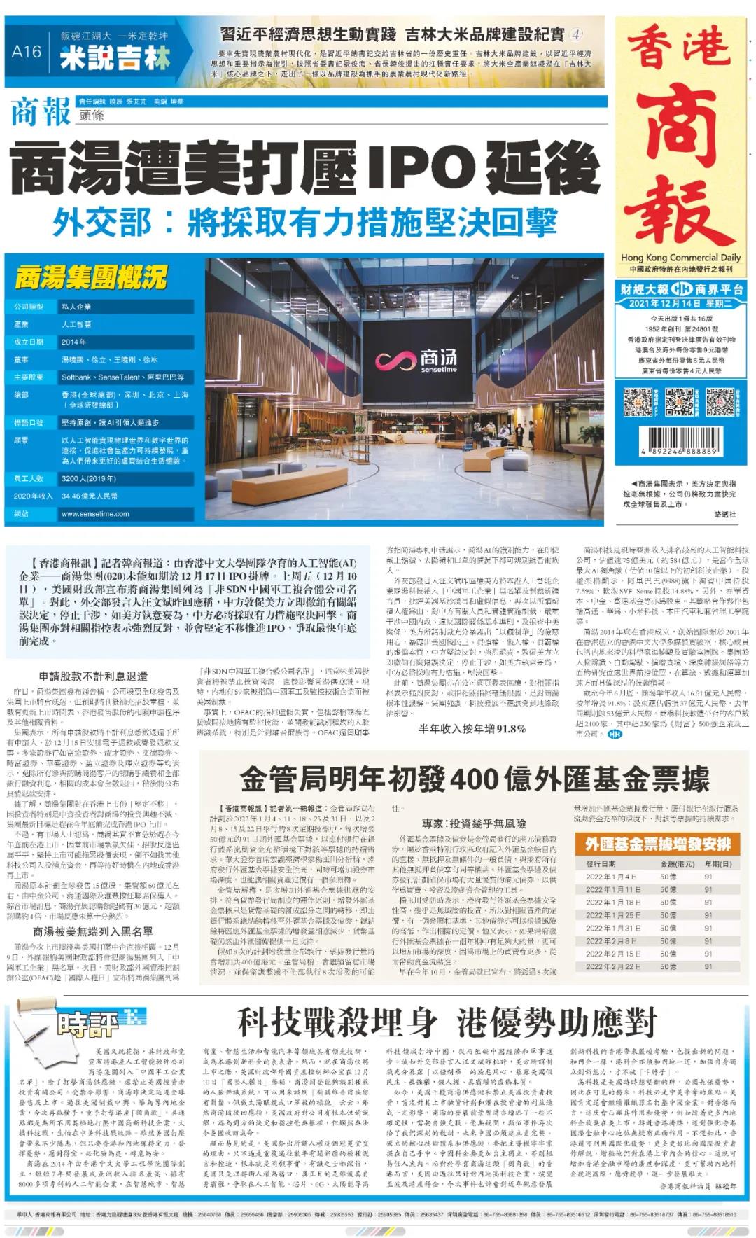 對此,外交部發言人汪文斌昨回應稱,中方敦促美方立即撤銷有關錯誤決定,停止干涉,如美方執意妄為,中方必將採取有力措施堅決回擊。商湯集團亦對相關指控表示強烈反對,並會堅定不移推進IPO,爭取最快年底前完成。